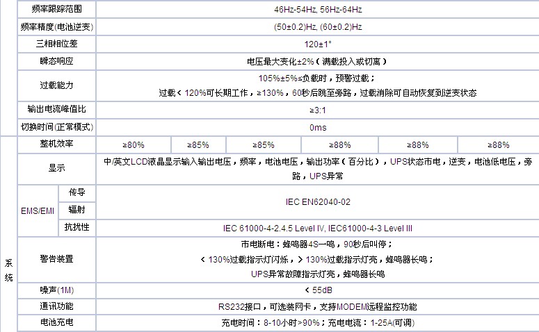 輸出頻率可以根據(jù)市電頻率自動設(shè)置為50Hz或者60Hz;
