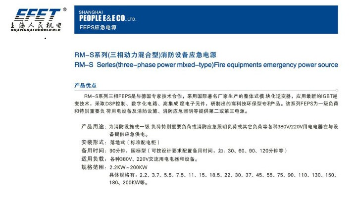 首頁 > 產品 > 上海人民機電 > RM-S系列(三相動力混合型)消防設備應急電源