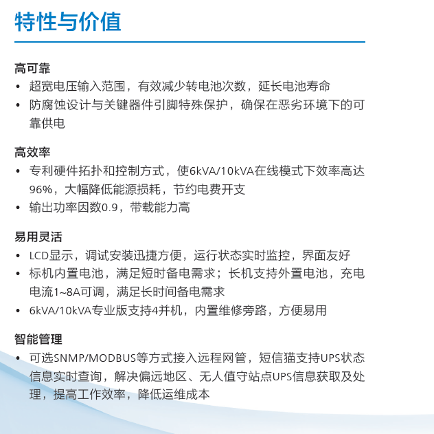 UPS2000-A系列涵蓋了1-10kVA的容量范圍,支持塔式安裝與內(nèi)置電池,可為分支機(jī)構(gòu)、營(yíng)業(yè)網(wǎng)點(diǎn)、辦公等場(chǎng)景提供可靠的不間斷供電。 UPS2000-A系列基于在線雙變換技術(shù),可全面消除九種電力故障的影響,有效保護(hù)負(fù)載。 高功率密度設(shè)計(jì)有效降低體積,更加節(jié)約空間,是一體化供電保障場(chǎng)景的最佳選擇。